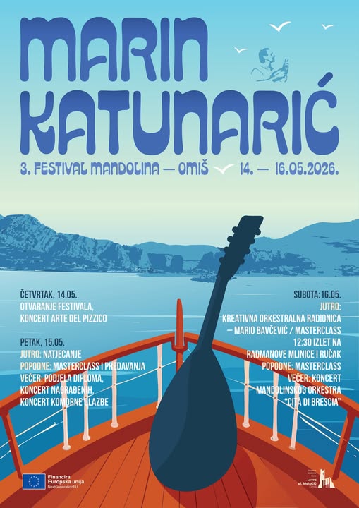 Od 14. do 16. svibnja 2026. godine Omiš ponovno postaje mjesto susreta vrhunskih glazbenika, mladih talenata i svih zaljubljenika u mandolinu ! PROGRAM FESTIVALA 14. SVIBNJA 2026. – ČETVRTAK…